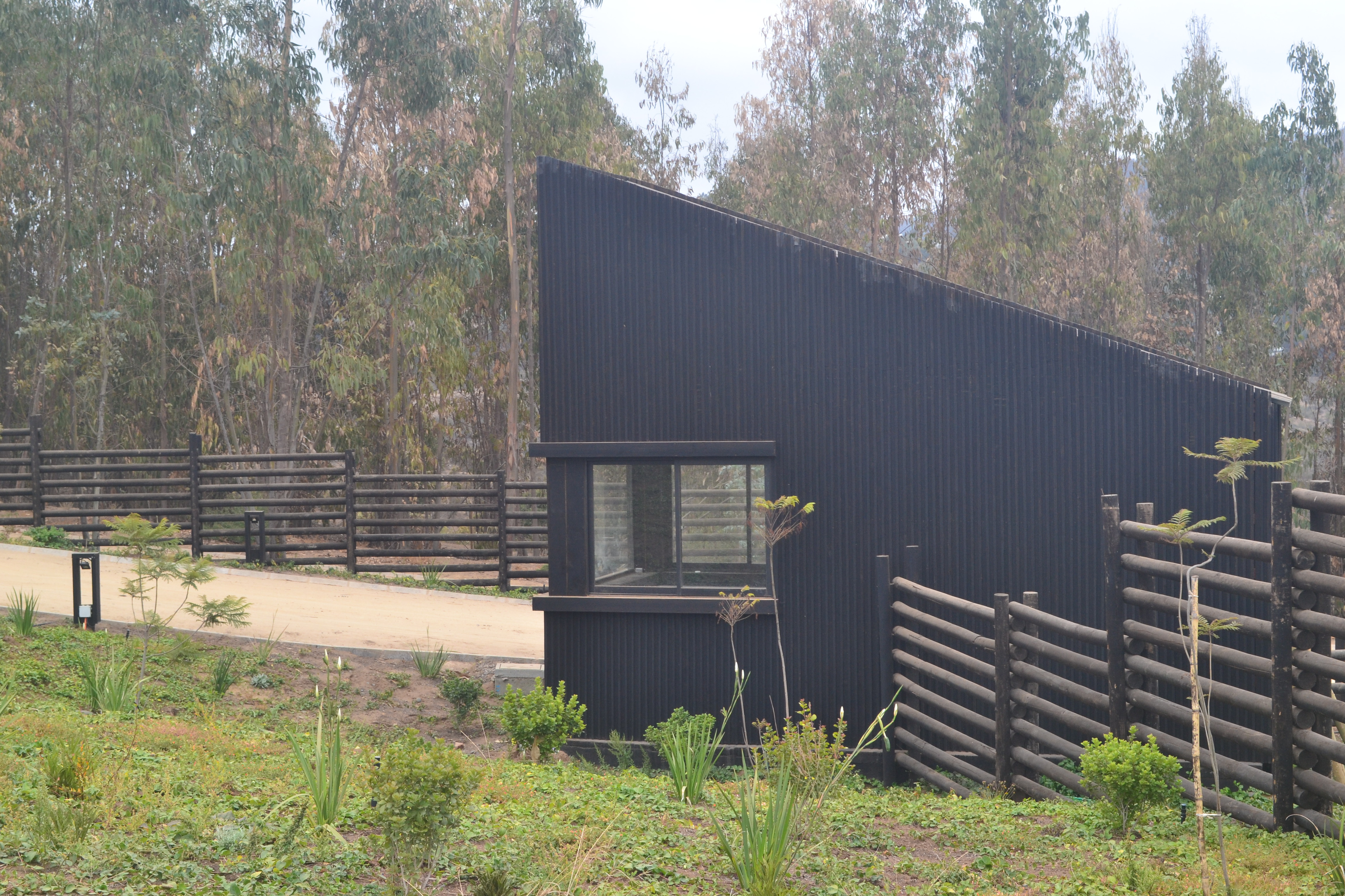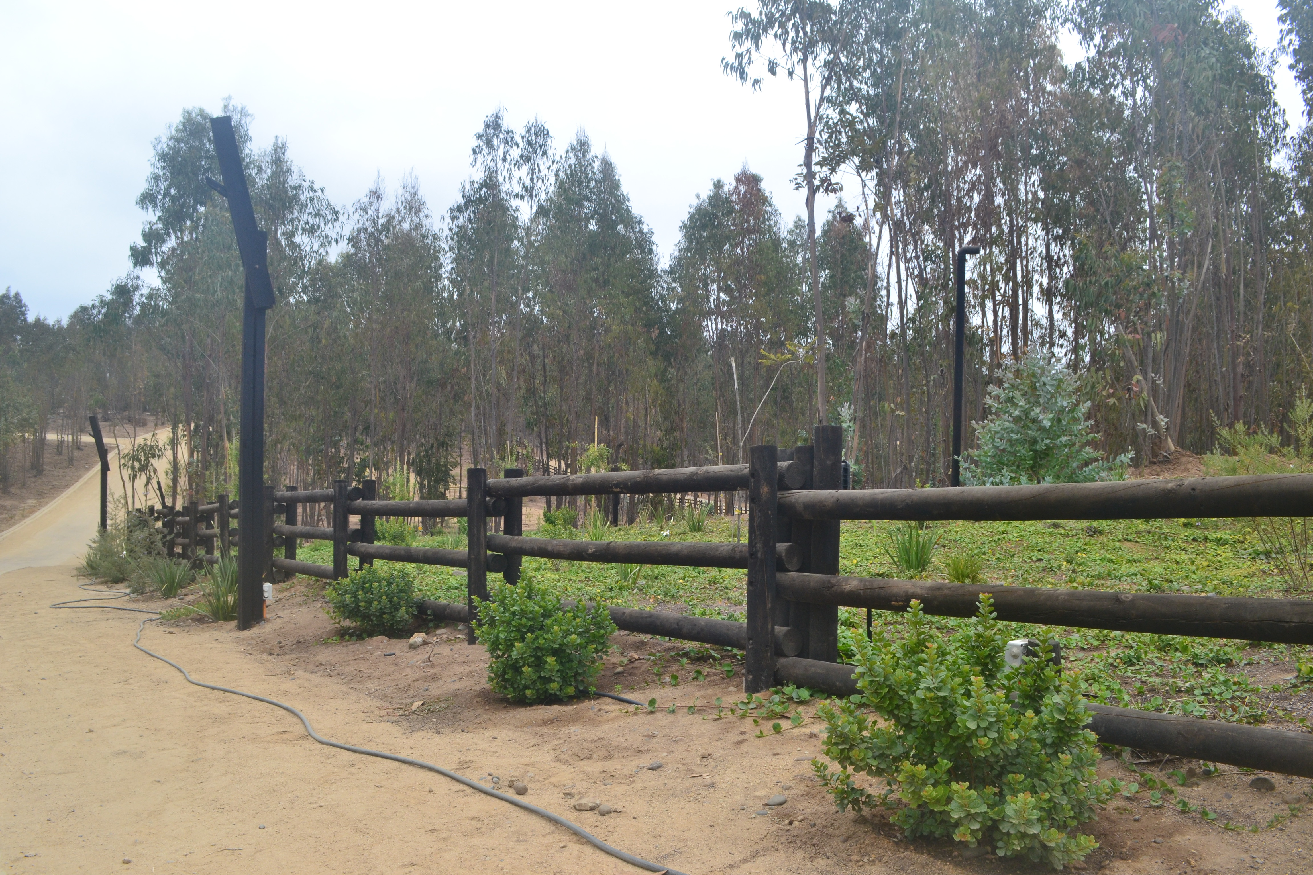 Es así como en conjunto y en un cuidadoso trabajo de levantamiento de las especies existentes fuimos trazando una urbanización cuyas circulaciones se iban emplazando en los claros que se formaban entre dichas masas arbóreas, de modo de evitar botar árboles. De esta forma logramos una urbanización con sesenta lotes para auto construcción con calles de tierra apisonada, puesto que, para minimizar el impacto, quisimos evitar las superficies pavimentadas. Diseñamos además un sistema de senderos que se entrelazan al circuito de calles y generan lugares de esparcimiento con un mobiliario y equipamiento (luminaria, casetas de control, etc.) diseñado con piezas de madera de modo de diferenciarnos abiertamente con los desarrollos aledaños que a nuestro juicio imponían una estética demasiado urbana, negando los atributos locales.