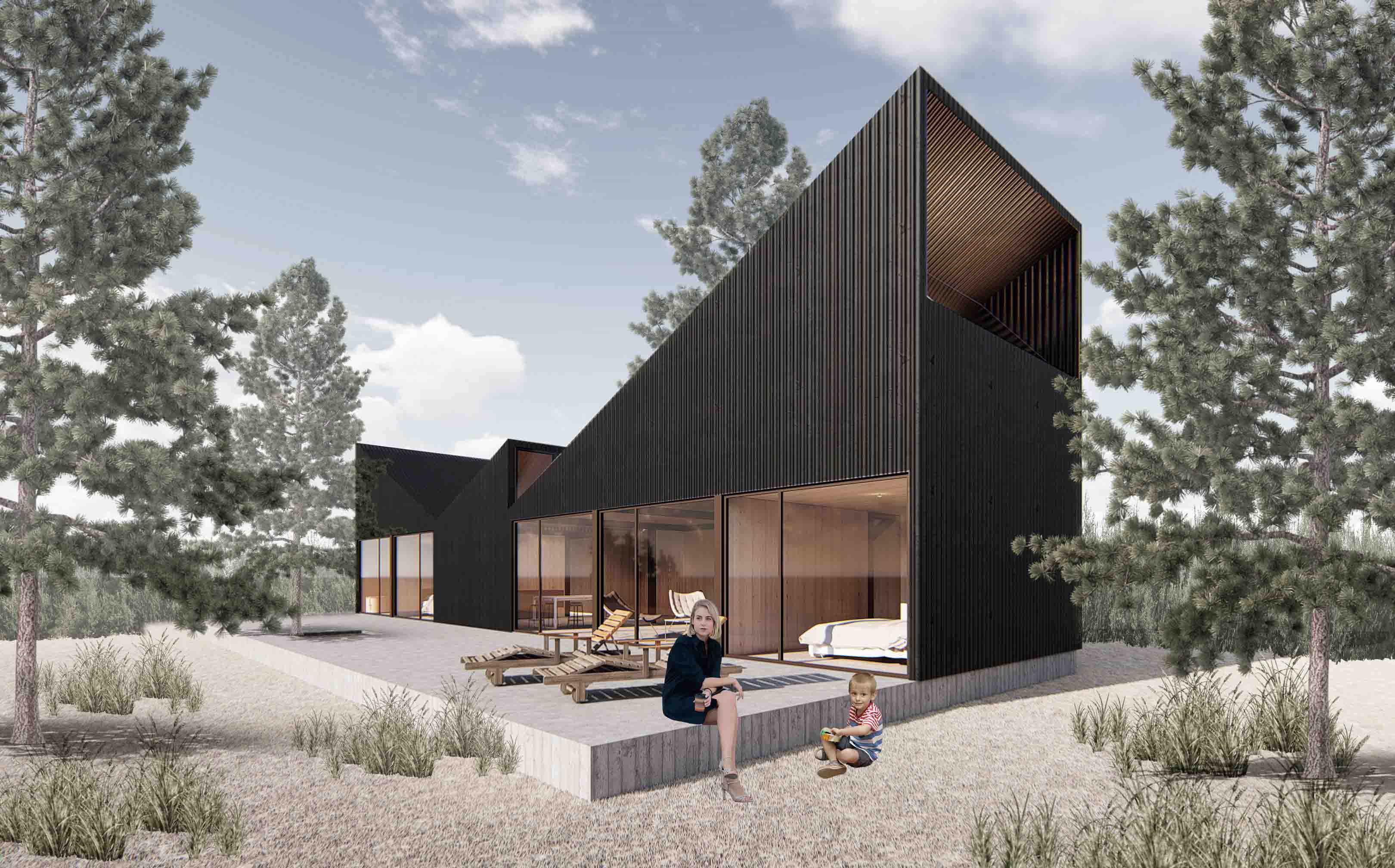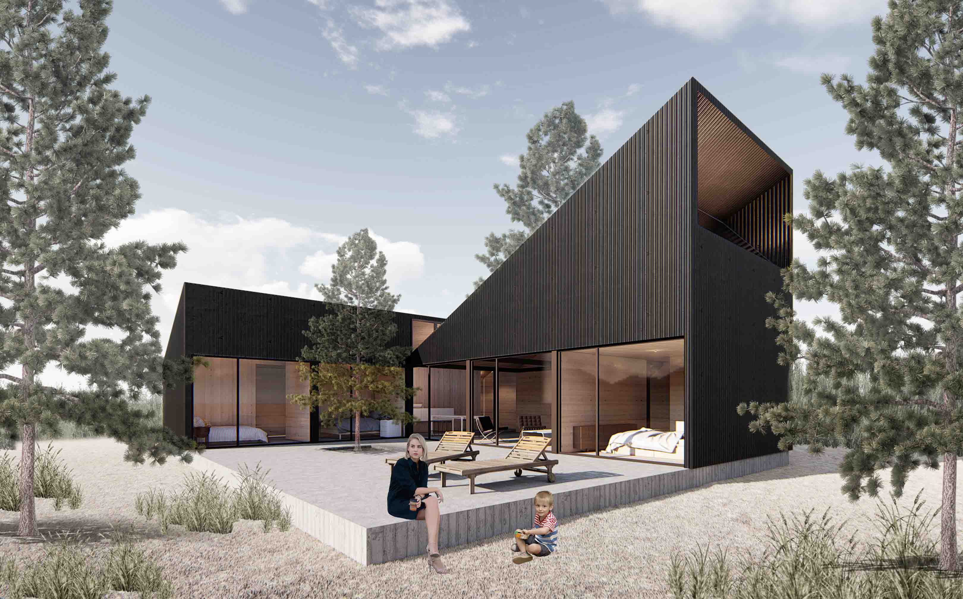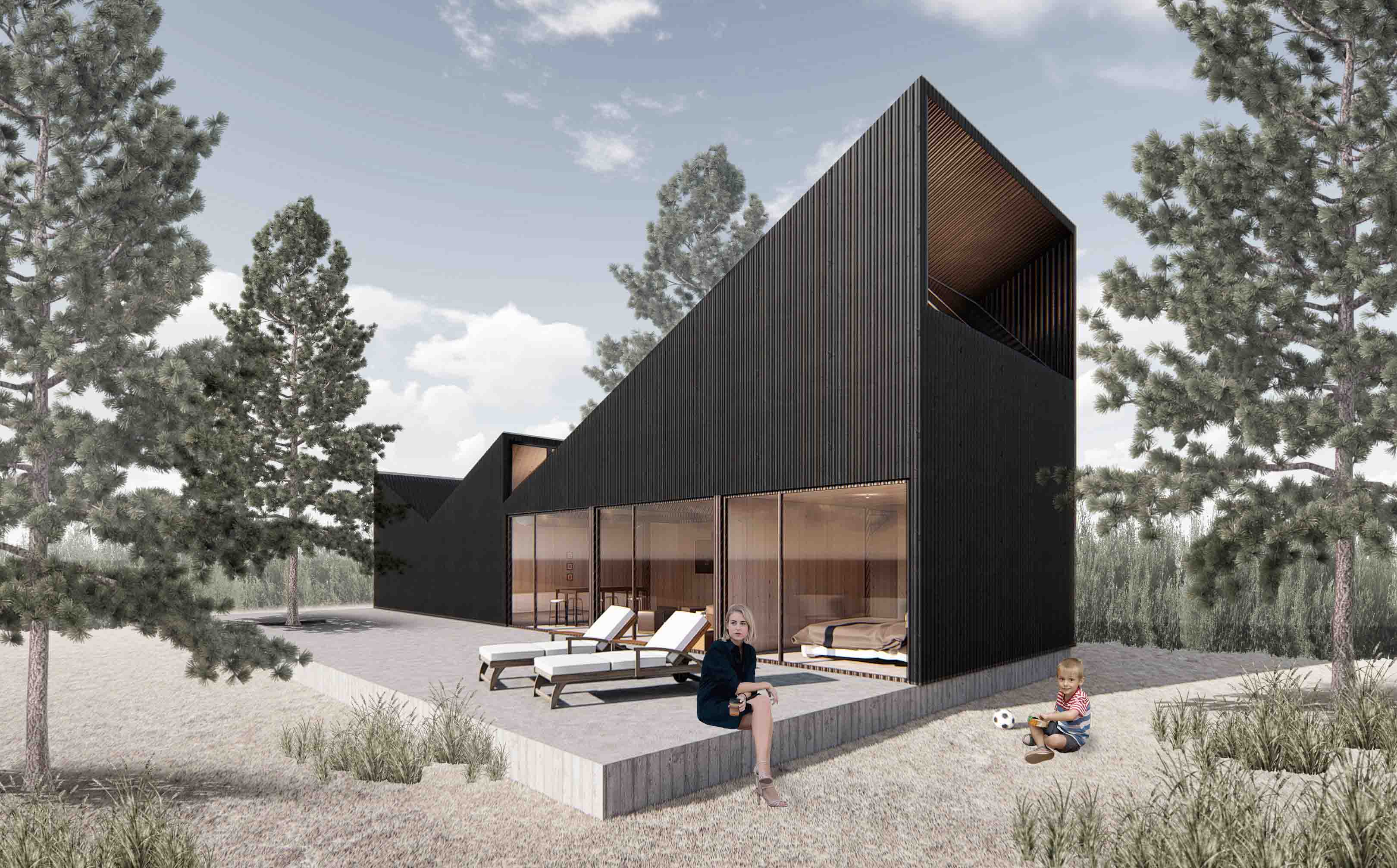 Este proyecto nace como solución habitacional para el loteo El Claro de Maitencillo. Se generan 3 tipologías que se ajustan a la geometría de los terrenos y a la estética del loteo. Más que casas modulares, son casas diseñadas a partir de la economía y la eficiencia de los materiales. Cada listón y placa de madera está utilizado al máximo para evitar pérdidas.