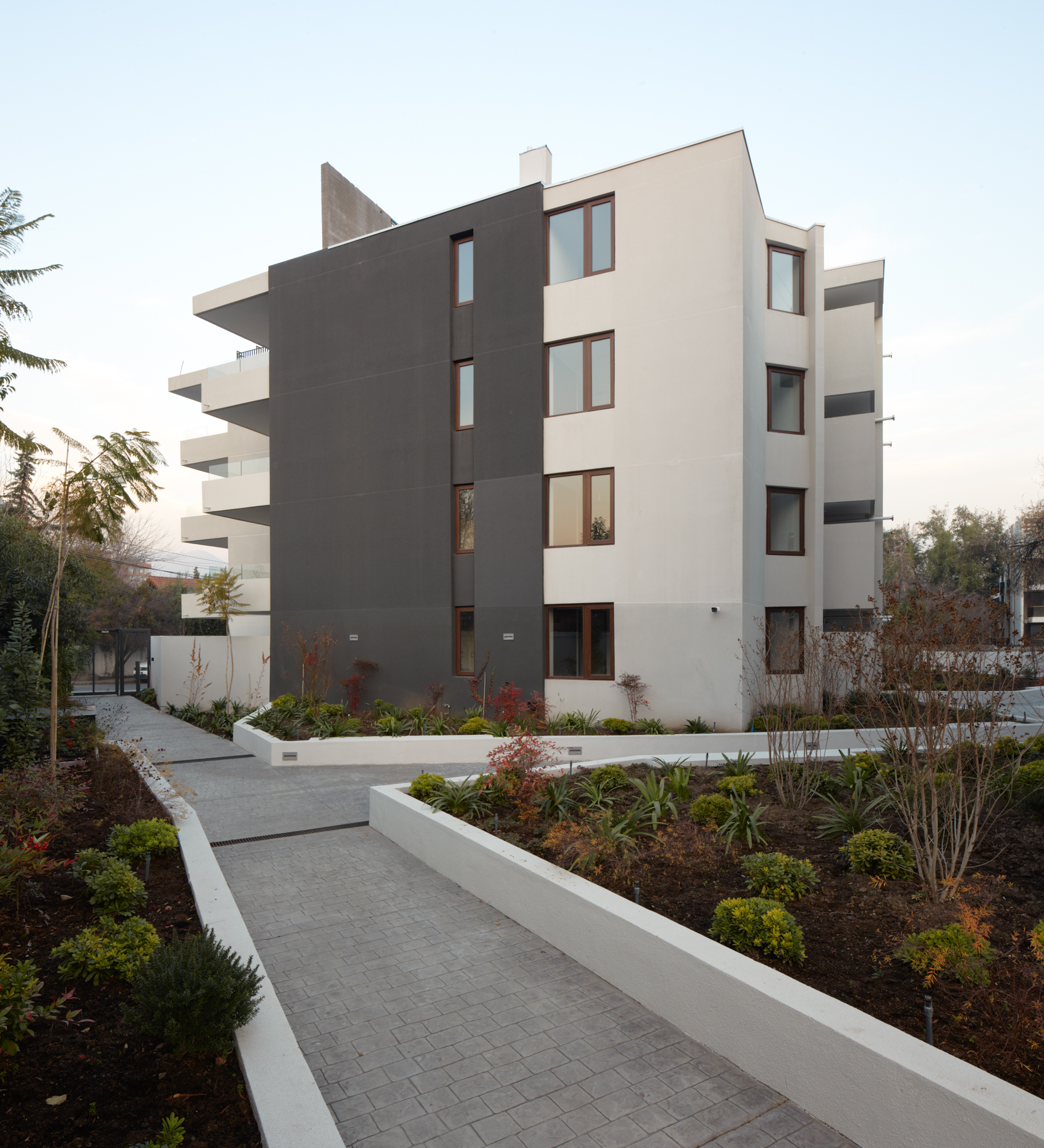 El Edificio El Peral se emplaza en una zona residencial de la comuna de Lo Barnechea en un terreno de 3.138,70m2. Tiene frente hacia dos calles; El Peral y El Rebalse. Se plantea la realización de dos torres independientes enfrentando a cada una de estas calles. Con el fin de buscar la mayor eficiencia en la cantidad de superficie de circulaciones, se generan cuatro halles de distribución con el mínimo para un ascensor y las dos puertas de acceso de cada departamento. Esto permite generar dobles frentes en los departamentos permitiendo mayor iluminación natural y ventilación cruzada. A estos cuatro núcleos se ingresa peatonalmente a través de un parque central con jardineras, paisajismo y una piscina común. A los departamentos de los primeros y cuartos pisos se les incorpora una escalera con el fin de aprovechar el subsuelo y las azoteas respectivamente. El edificio se trabaja en estructura de hormigón armado.