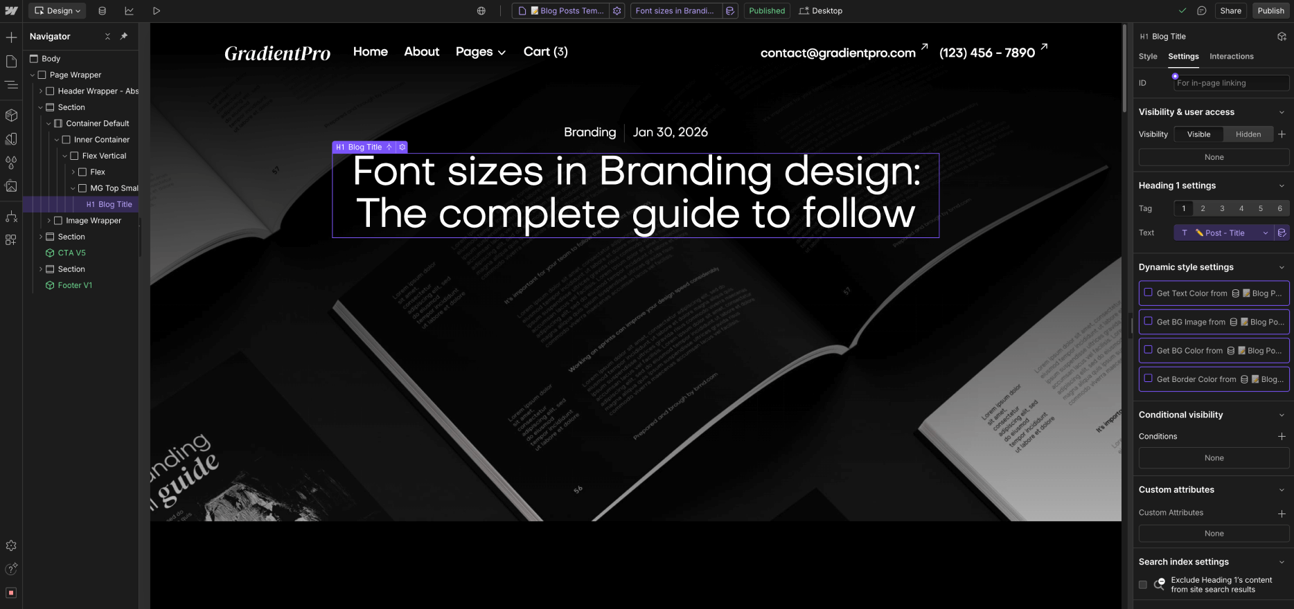 Thanks for purchasing the GradientPro template. In this brief guide we cover all the basics on how to edit basic elements (i.e. colors, fonts, CMS content, etc) from the GradientPro Webflow template.