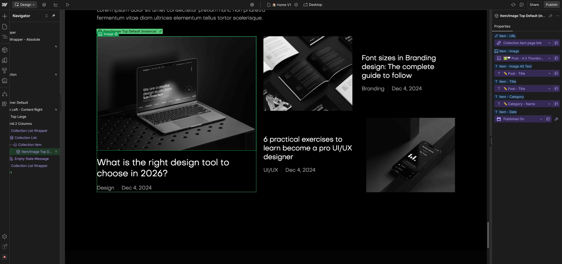 Every time you make a change (for example, you create a new section design), it's a good practice to go to your Viewport top navigation and see how it looks on Tablet and Mobile.