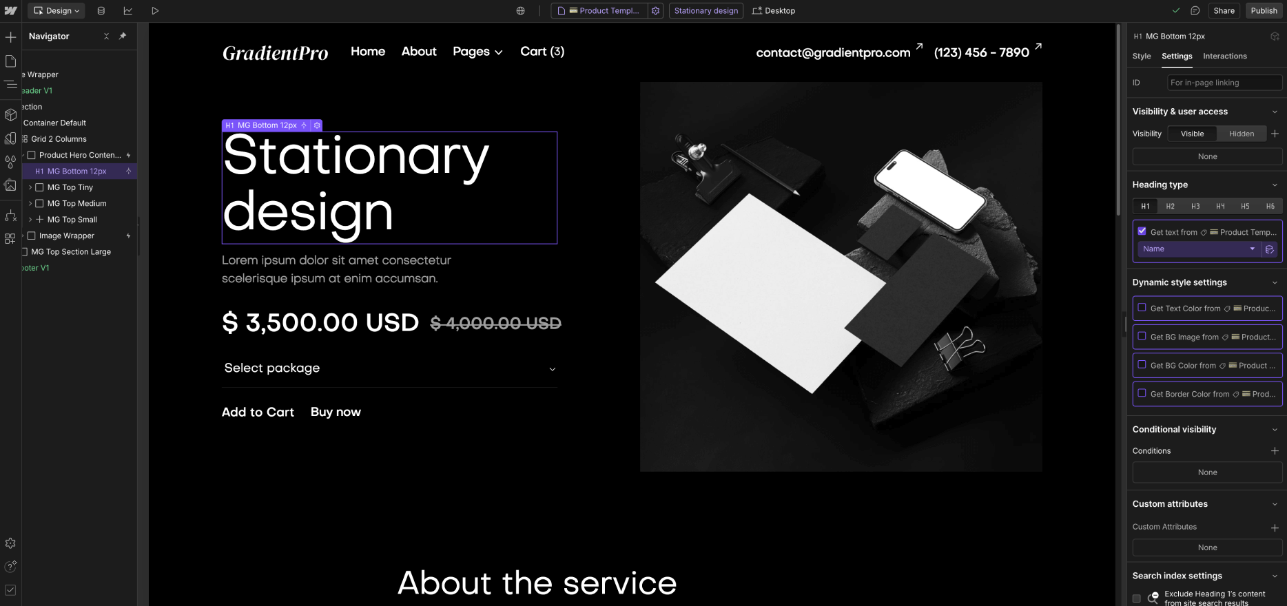As you could see above, GradientPro was built on Webflow using the best practices to make it very easy for you to edit the template and customize it to your needs.
